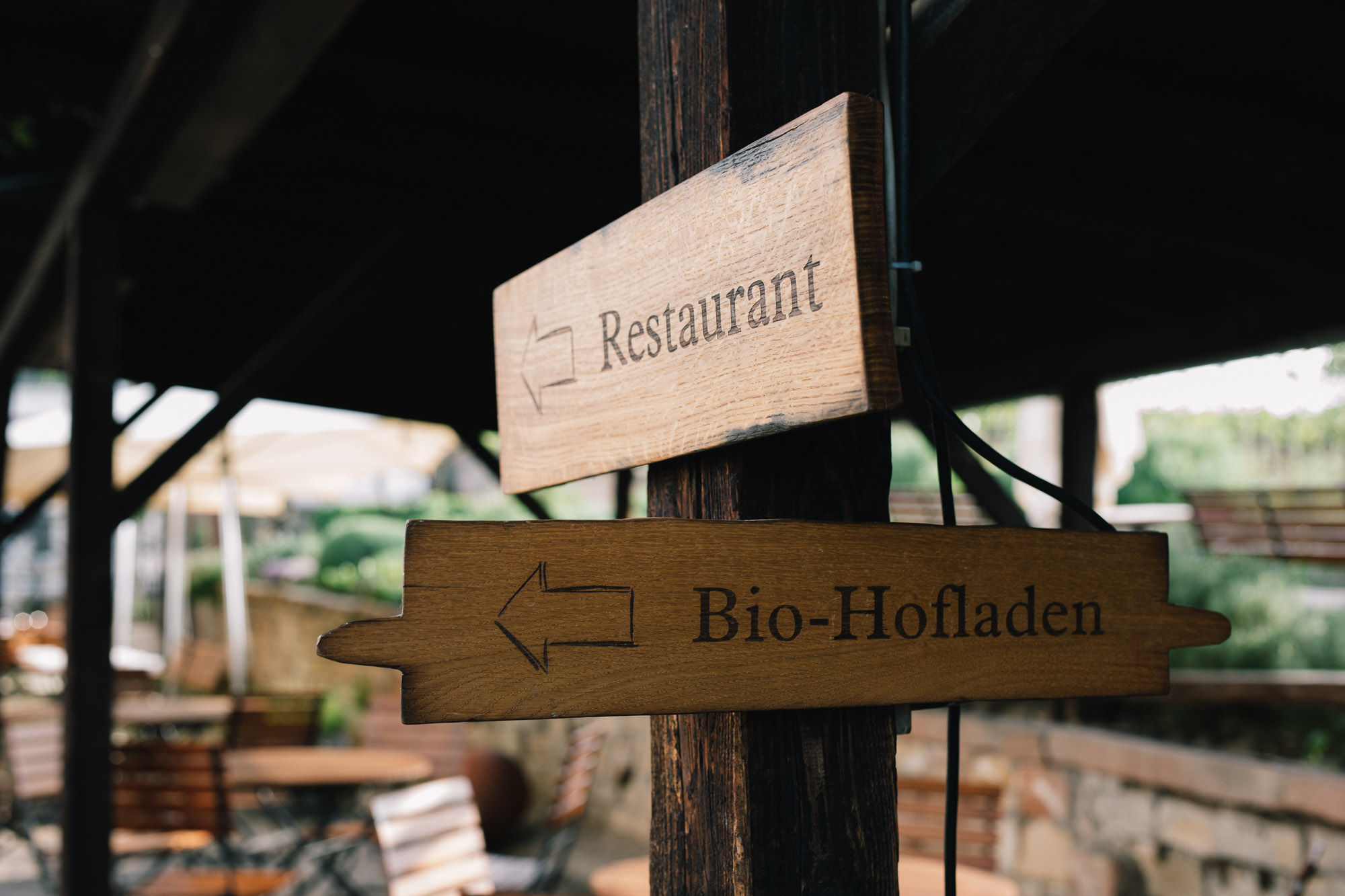 Hofgut: Im Hofladen bieten wir hochwertige Lebensmittel zu den üblichen Handelspreisen an. Die Abgabe erfolgt in handelsüblichen Verpackungen. Die Kalkulation beinhaltet keine gastronomische Berechnung für die Bereitstellung der Gärten und der Ausstattung, Teller, Besteck und Servietten. Unser Speisenangebot von der Karte des Gutsausschanks ist so konzipiert, dass für alle Geschmäcker etwas vorhanden ist. Wir bitten Sie höflich, ausschließlich dieses Angebot zu nutzen.
