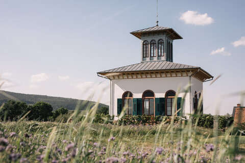 Unser Ensemble bietet zahlreiche, traumhafte Plätze. Von der bewusst wilden Picknickwiese über die gepflegte Rasenfläche zu den Kräutergärten, unmittelbar in den Weinbergen, umgeben von Rosmarinhecken bis hin zum klassizistisch angehauchten Garten des Lustpavillons/ Teehaus von 1844, gibt es in den Hofgut-Gärten vieles zu erleben.