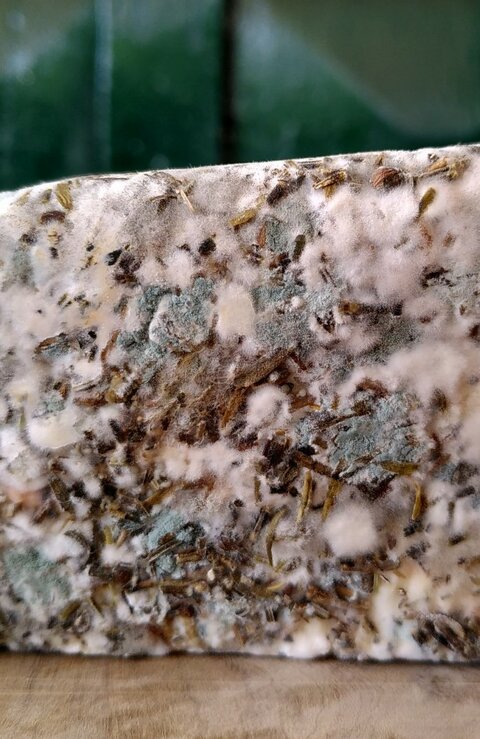 Die Affinage geht von einem bis zu drei Monaten. Das Besondere ist eine erwünschte, natürliche Reifeschimmelbildung, über die der Affineur mit Argusaugen wacht. Der weißlich-bläuliche Flaum entwickelt sich in und mit den Kräutern und wird so gegessen, wie er daher kommt. Erst dann entwickelt er sein volles Aroma!