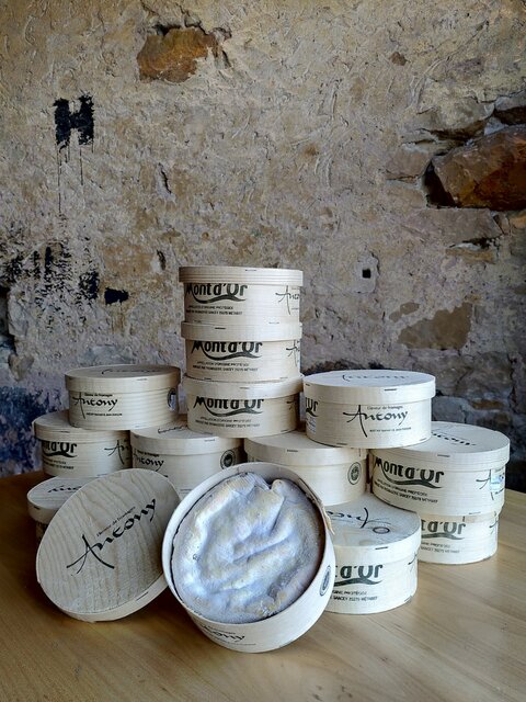 Der Vacherin du Mont d’Or ist ein saisonaler Käse, der nur zwischen dem 10. September und dem 10. Mai verkauft wird. Dieser hier stammt von der Fromagerie Sancey in Métabief am Fuße des Mont d’Or (1419m). Das Gebiet grenzt an die Schweiz, oberhalb des Neuenburger Sees.